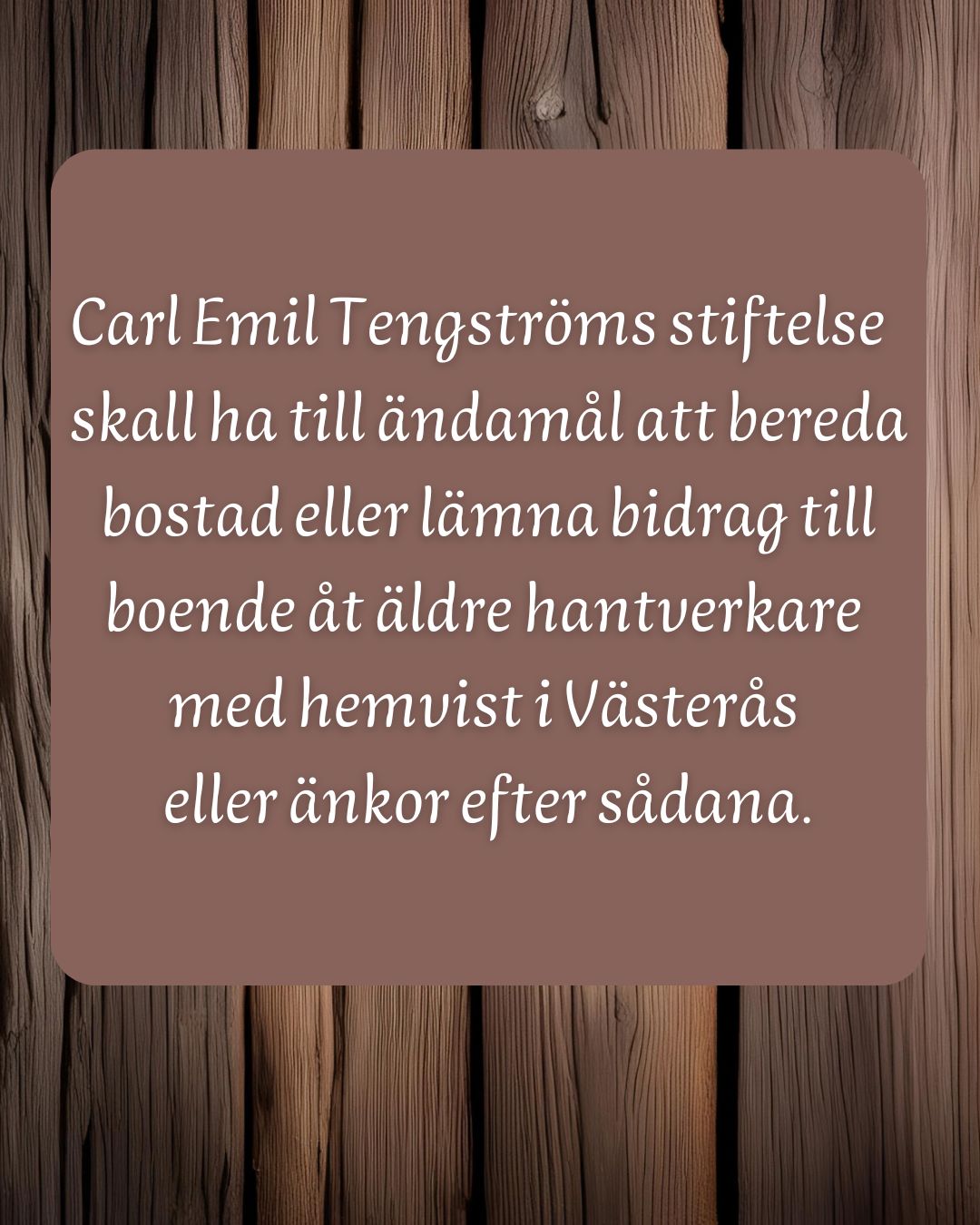 Carl Emil Tengströms stiftelse har som ändamål att stödja äldre hantverkare med hemvist i Västerås – eller änkor efter sådana – genom att bereda bostad eller lämna bidrag till boende.